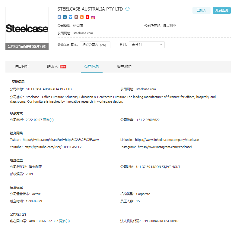 查看了他们的History简介,得知该公司是澳洲一家大型的卧室家具进口商。查了一下产业链,是一家独立的公司,业务还算集中。